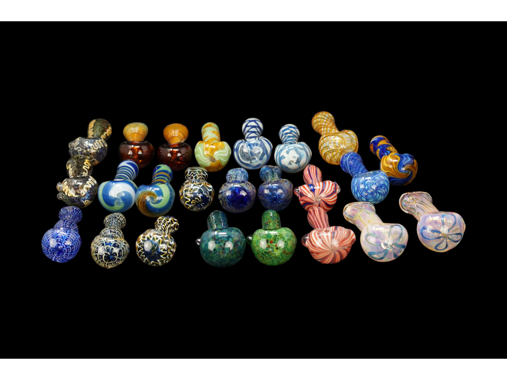 3"-3.5" HIGH END HAND PIPES-24 CT BUNDLE. HIGH QUALITY HAND PIPES WITH 24 COUNTS, ASSORTED STYLES AND COLORS PREPACK, VERY GOOD FOR SMOKE SHOP AND RETAIL STORES.