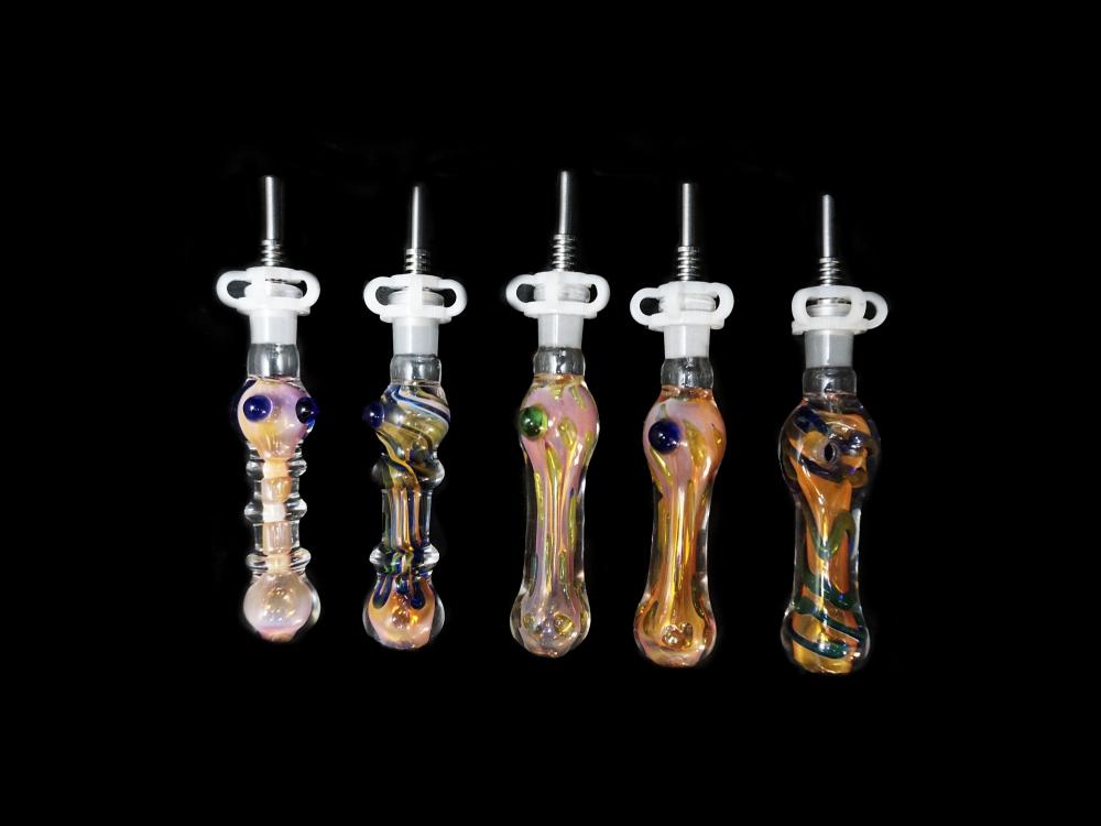 5"- 40 Gr. GOLDEN ART HIGH-END NECTAR COLLECTOR. IT COMES IN MULTIPLE COLOR DESIGN VARIATIONS. THE PACKAGING INCLUDES A CLIP AND A TITANIUM NAIL.