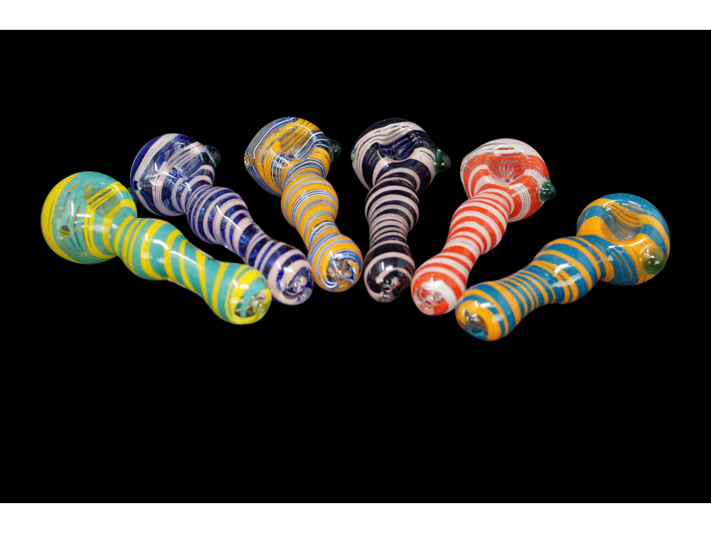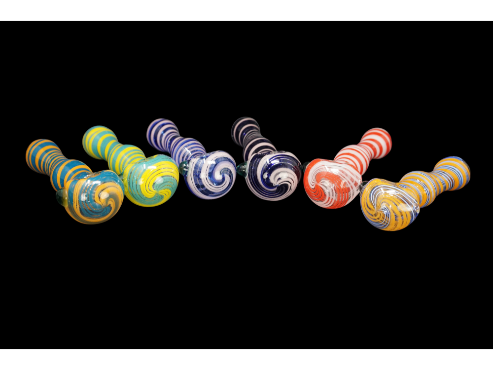 4.5"/75 Gr SWIRL ART RIM PIPE, COLOR MIX, HAND BLOWN SMOKING PIPE
