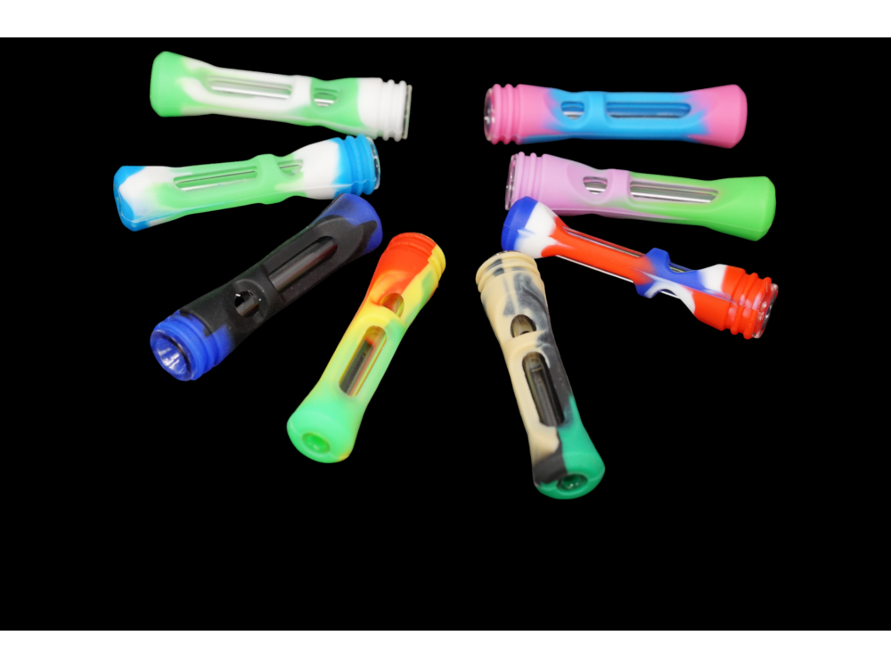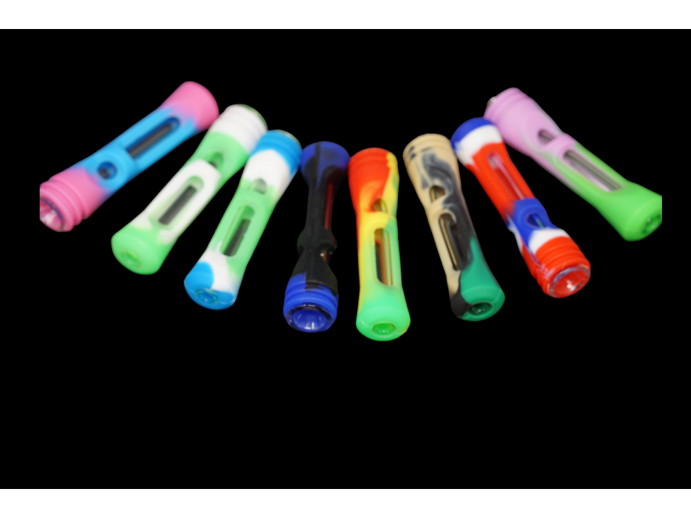 SILICONE AND GLASS CHILLUM. IT COMES IN DIFFERENT COLOR VARIATIONS.